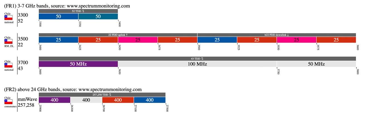 - alrededor de 26 GHz (banda milimétrica, la más veloz)