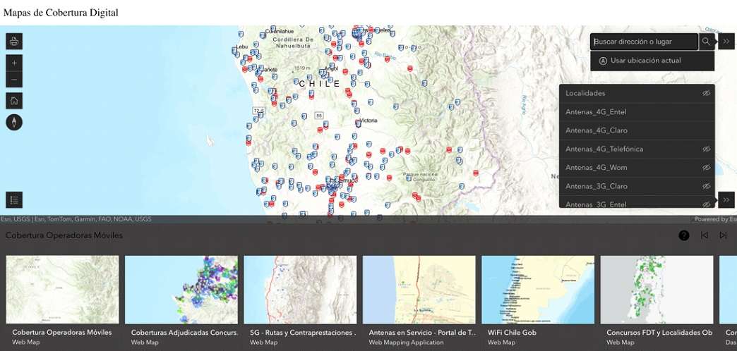 ⦁ En Mapa Cobertura Digital (subtel.maps.arcgis.com) podrá apreciar también la ubicación de las antenas activando una por una según operador y tipo de red (2G/3G/4G/5G).