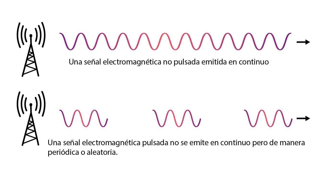 Las señales electromagnéticas pulsadas son paquetes de ondas de alta frecuencia emitidas periódicamente tal como lo hace el Wifi, Bt, 4G, 5G, DECT…
