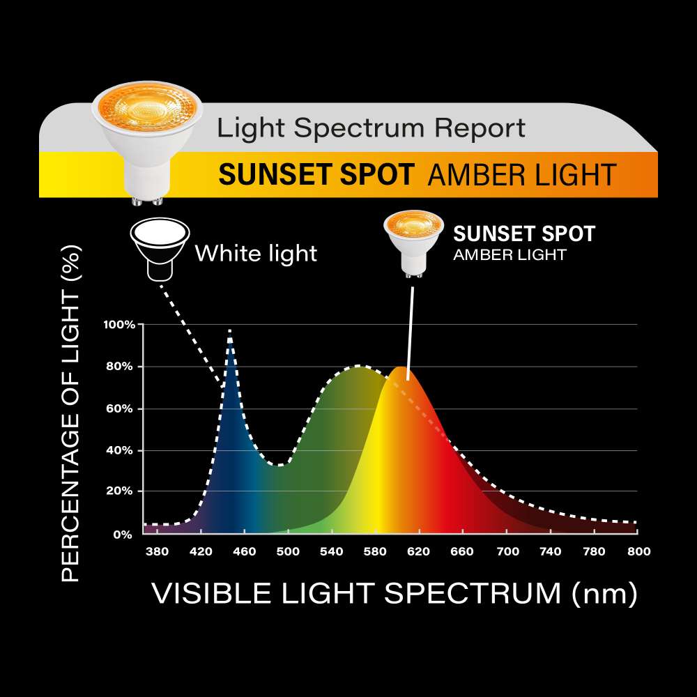 • Nuestras lámparas SUNSET de luz ámbar garantizan un bloqueo de todas las longitudes de onda de luz azul hasta 500 nm, y nuestras lámparas TWILIGHT de luz roja todas las longitudes de onda de luz azul y verde hasta 570 nm, garantizando la máxima protección de sus ritmos circadianos ( reloj biológico).