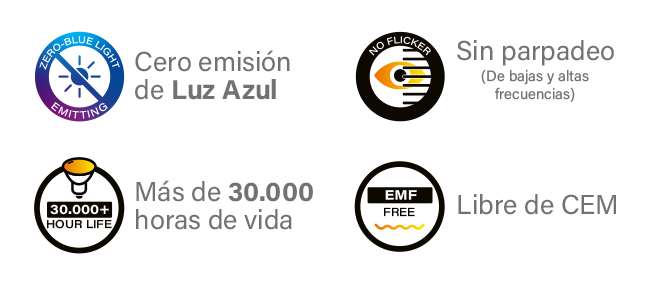 SIN PARPADEO: Las luces LED convencionales producen parpadeo, que son fluctuaciones invisibles al ojo ocurriendo miles o millones de veces por segundo. El “parpadeo” de una ampolleta LED normalmente no es visible para el ojo humano debido a su rápida velocidad. El parpadeo tiene efectos tanto fisiológicos como neurológicos en nuestro cuerpo, como fatiga visual, fatiga, dolores de cabeza y dificultad para concentrarse. Todas nuestras ampolletas han sido diseñadas para no parpadear.