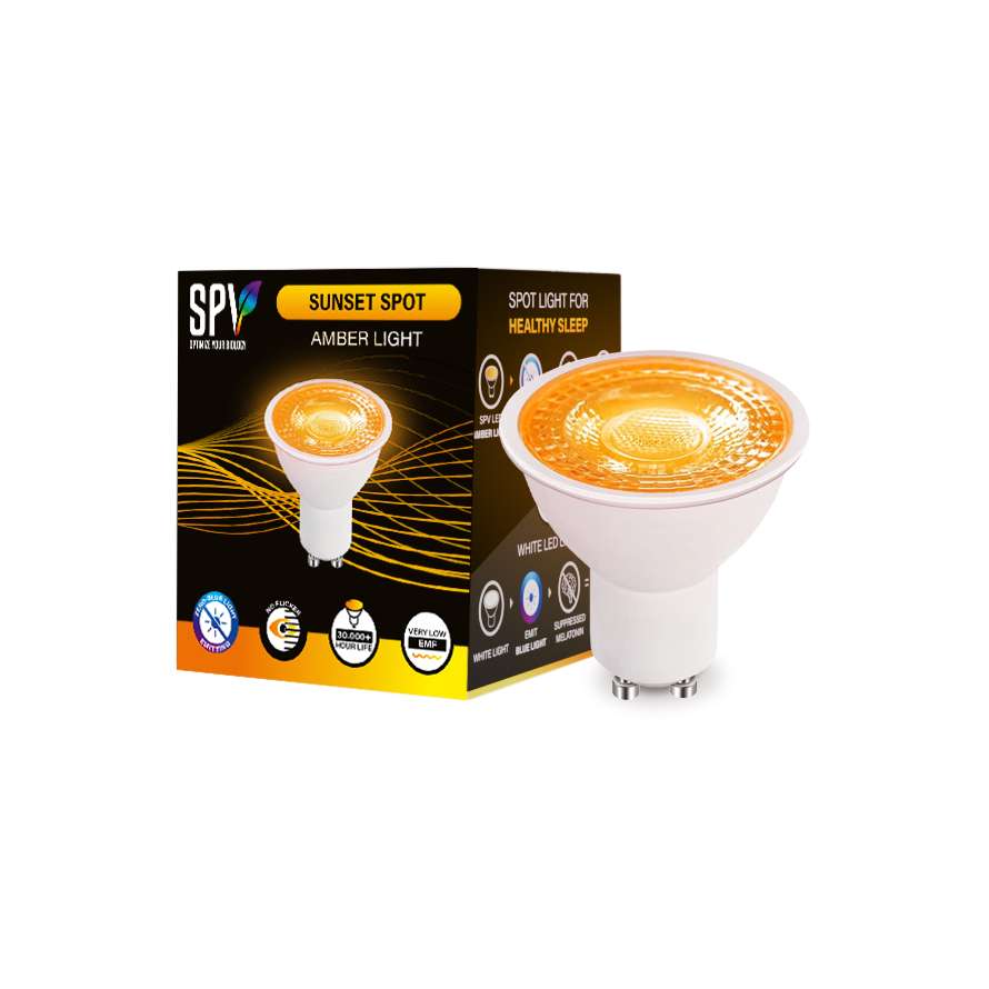 Nuestras ampolletas Sunset Spot están diseñadas principalmente para promover la salud y son adecuadas para cualquier rincón de su hogar. Con un relajante espectro de luz ámbar, estas ampolletas garantizan la ausencia de luz azul, eliminan el parpadeo y campos electromagnéticos (CEM).