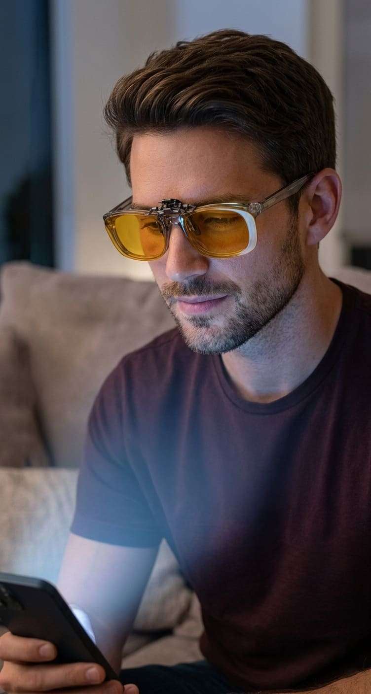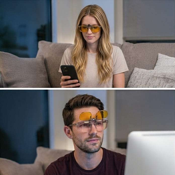 Se enganchan directamente sobre tus gafas ópticas, permitiéndote bloquear la luz azul artificial de pantallas y luces LED sin tener que cambiar tus lentes.