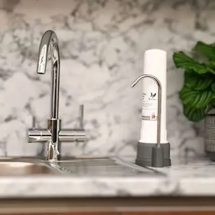 El HCP sobre encimera es un filtro muy adecuado para quienes no desean tener un filtro con fijación permanente, pues les permite llevar esta unidad de viajes o mudanzas.
