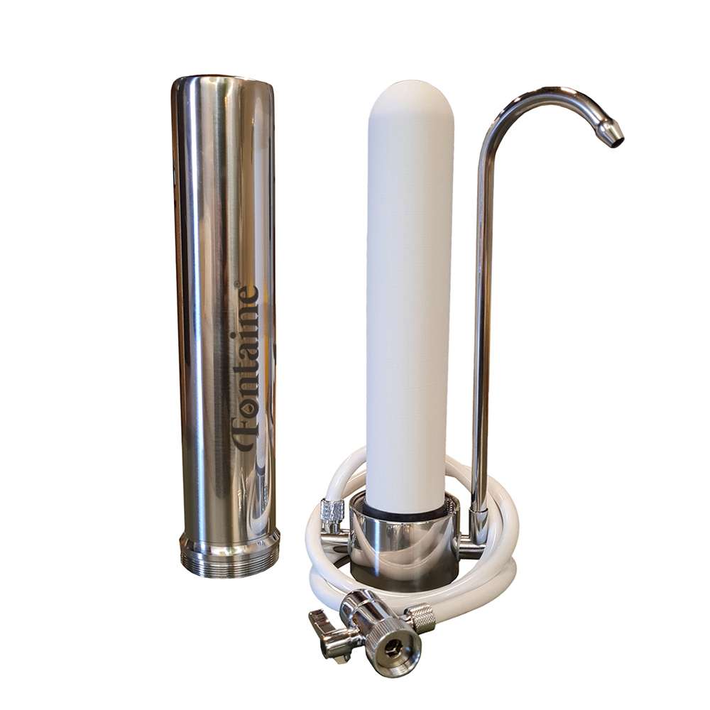 El purificador de agua sobre encimera Fontaine® HCS inox es una solución eficiente, compacta y portátil, diseñada para ofrecer agua pura y segura en cualquier momento. Su instalación es muy sencilla, por lo que puedes llevarlo contigo en viajes o mudanzas sin complicaciones.