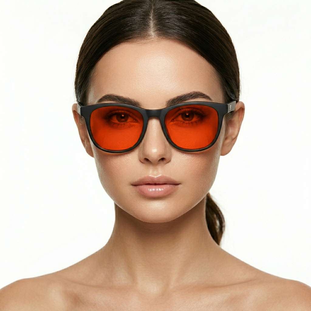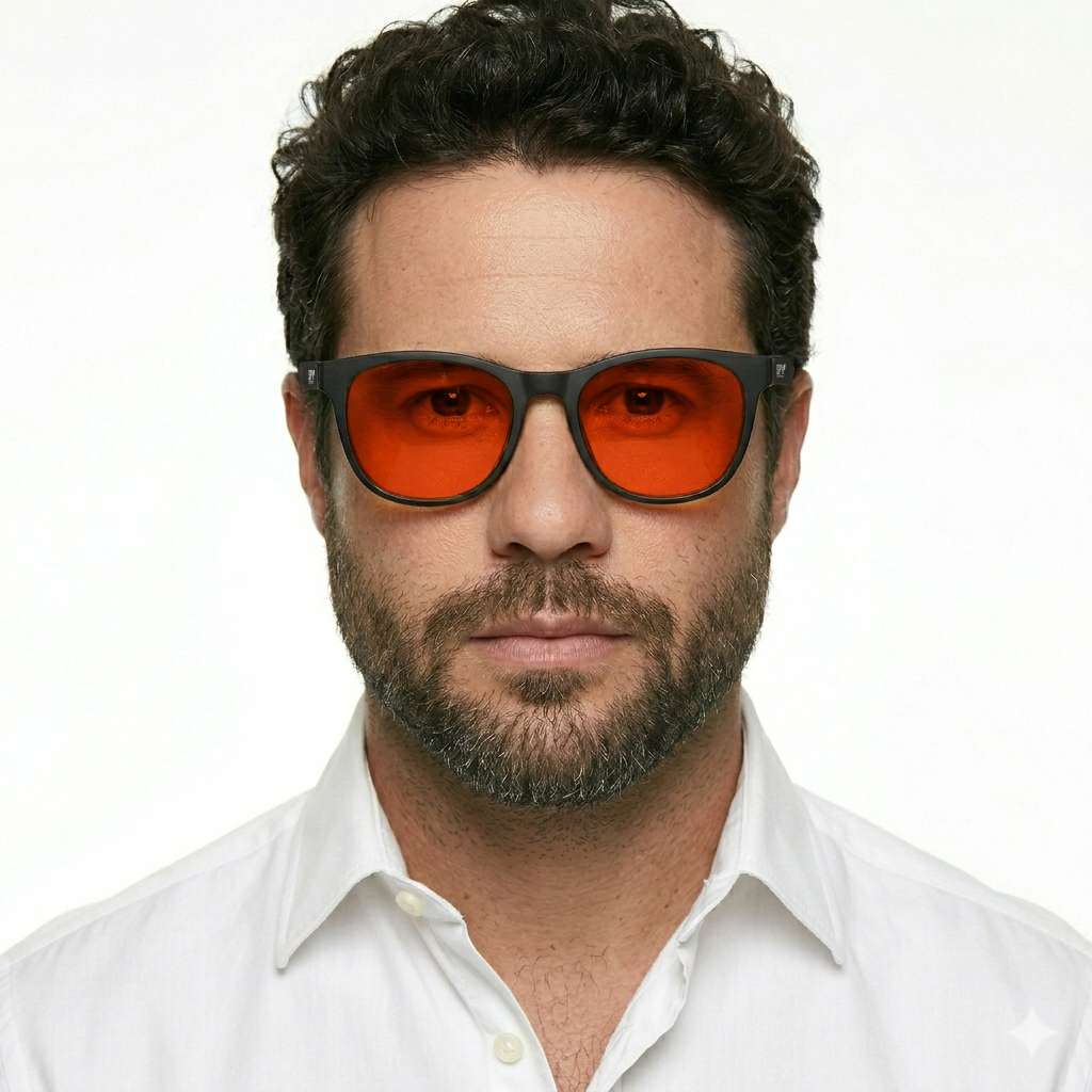 Gafas bloqueadoras de luz azul para uso nocturno (lente naranjo oscuro), diseñadas para proteger tus ojos de la luz azul artificial emitida por pantallas, luces LED, ampolletas led y fluorescentes.
