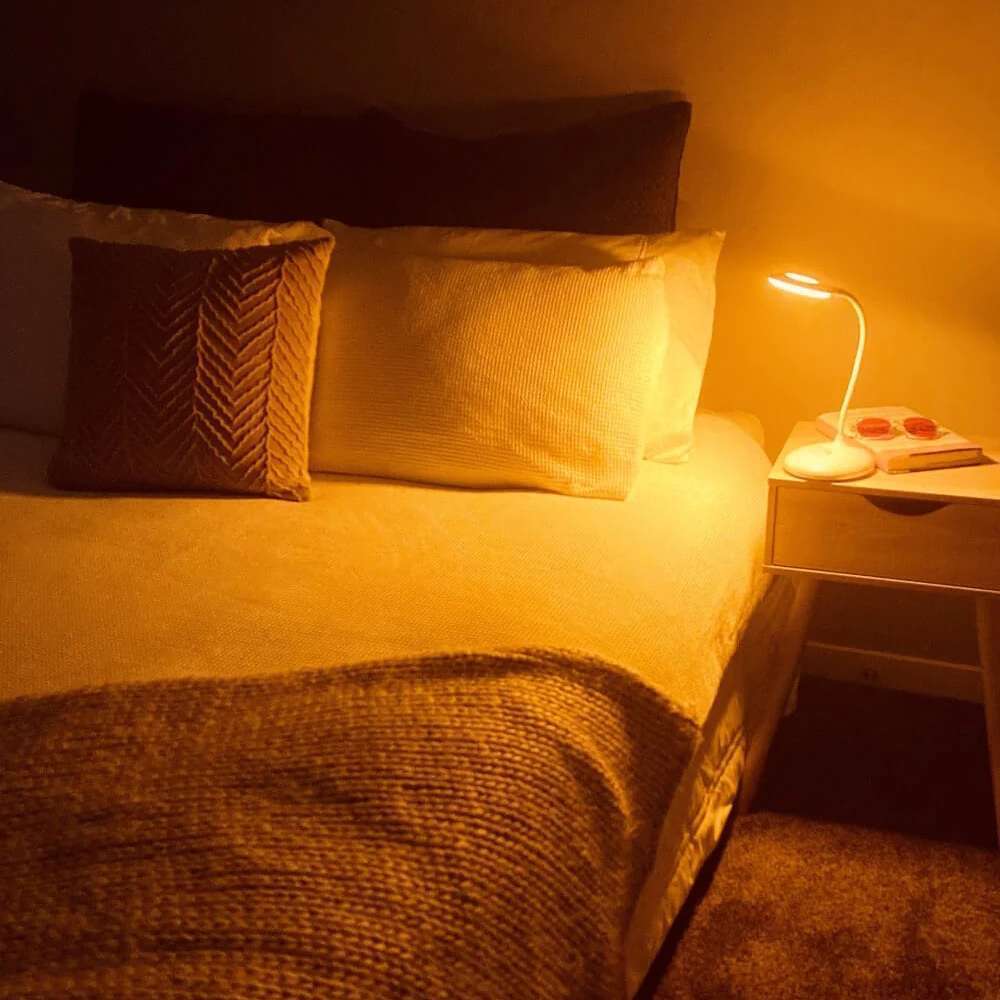 La lámpara para dormir NoBlue Ambar es una lámpara de noche/escritorio/lámpara de mesa portátil y recargable que proporciona una iluminación cálida y relajante sin luz azul.