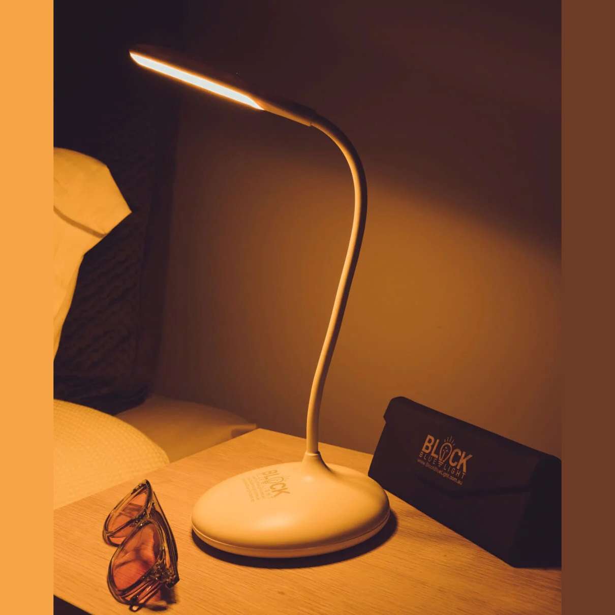 La lámpara para dormir ámbar NoBlue es una lámpara de noche/lámpara de escritorio/lámpara de mesa portátil y recargable que proporciona una iluminación cálida y relajante que es 100% libre de luz azul para promover un sueño profundo y reparador. Con 3 configuraciones de brillo con control de sensor táctil, una batería recargable integrada para hasta 16 horas de funcionamiento, tecnología Bajo EMF (Campos electromagnéticos) y Sin parpadeo (flicker).