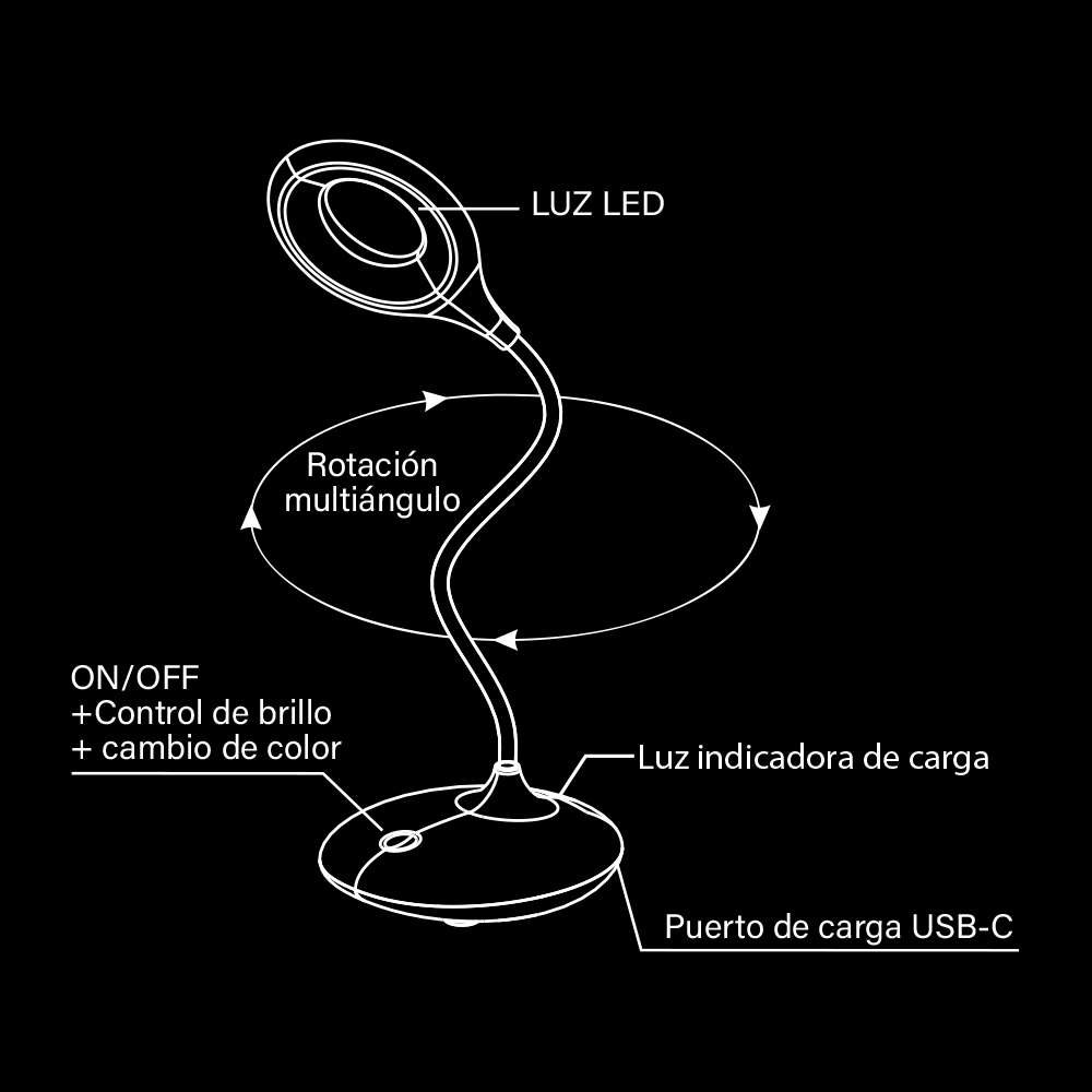 Cuello totalmente ajustable: personalice el ángulo y la dirección de la lámpara según sus preferencias. El cuello totalmente ajustable le permite colocar la luz exactamente donde la necesita, proporcionando una relajación y comodidad óptimas.