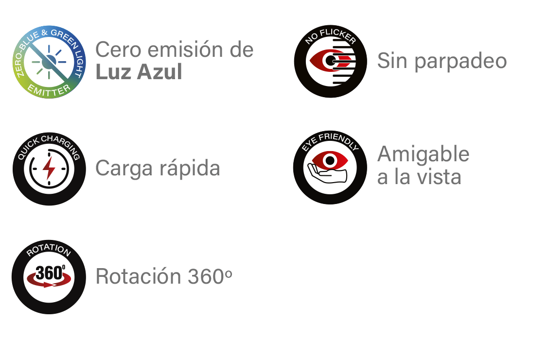 - Hemos incorporado un controlador avanzado para eliminar el parpadeo de la luz por completo. Las lámparas LED estándares producen parpadeo superando en muchas ocasiones más de 20.000Hz (parpadeando más de 20.000 veces por segundo) generando ultrasonidos y causando dolores de cabeza, migrañas y fatiga visual.