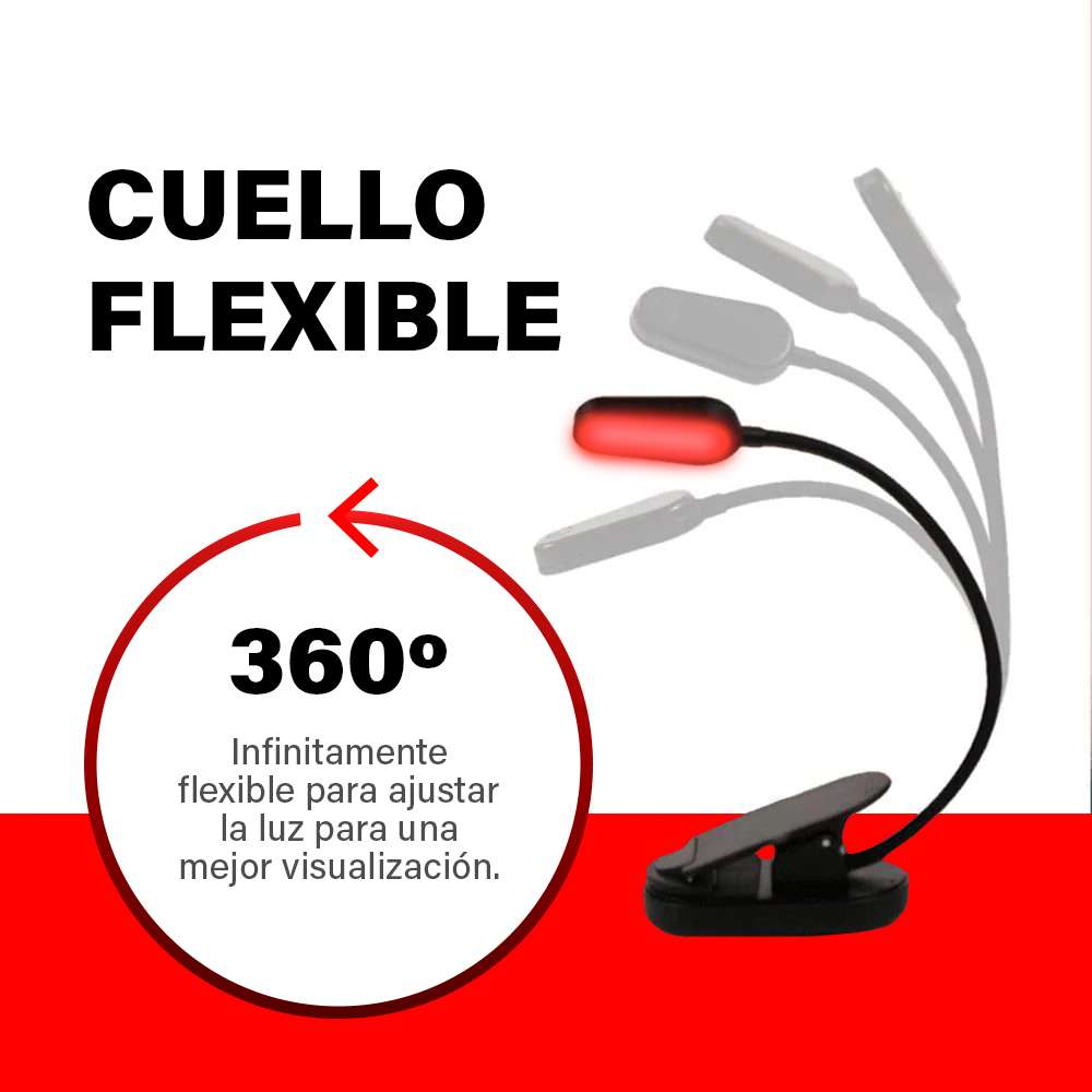 - Nuestra lámpara de lectura tiene una flexibilidad de 360 grados y se puede ajustar a la posición exacta que desees. Esto es especialmente útil cuando lees en la cama con una pareja.