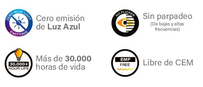 SIN PARPADEO: Las luces LED convencionales producen parpadeo, que son fluctuaciones invisibles al ojo ocurriendo miles o millones de veces por segundo. El “parpadeo” de una ampolleta LED normalmente no es visible para el ojo humano debido a su rápida velocidad. El parpadeo tiene efectos tanto fisiológicos como neurológicos en nuestro cuerpo, como fatiga visual, fatiga, dolores de cabeza y dificultad para concentrarse. Todas nuestras ampolletas han sido diseñadas para no parpadear.