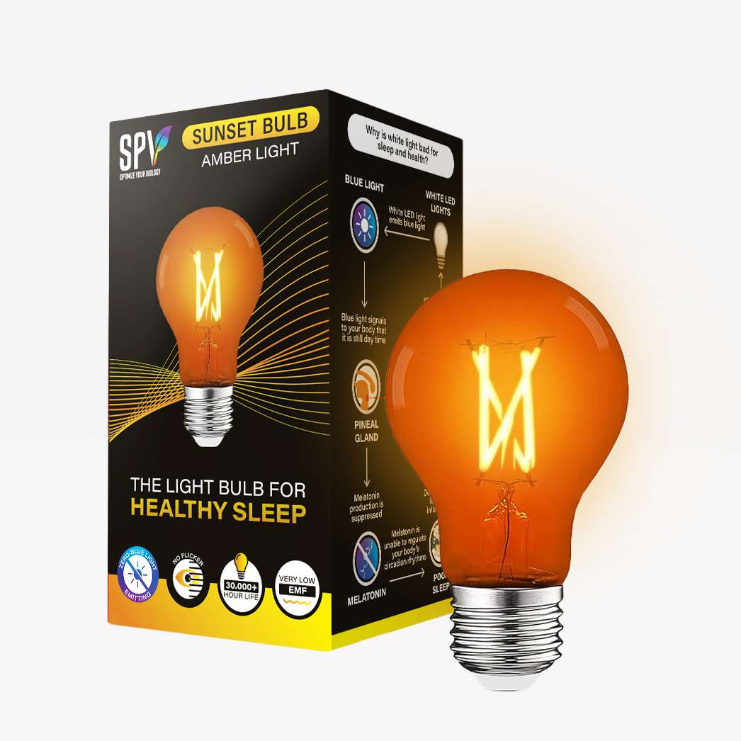 Por otro lado, las ampolletas Sunset sirven como una solución de iluminación versátil para diversas áreas del hogar, reemplazando a la mayoría de las ampolletas de 40w y 60w. Si bien proporcionan suficiente brillo y calidez, estas ampolletas eliminan por completo la dañina luz azul. Al reemplazar la mayoría de las ampolletas de su casa con nuestro modelo Sunset ámbar, puede crear un ambiente acogedor y relajante de luz naranja mientras se protege completamente a usted y a sus seres queridos contra los efectos perjudiciales de la luz azul.