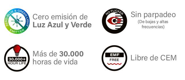 SIN PARPADEO: Las luces LED convencionales producen parpadeo, que son fluctuaciones invisibles al ojo ocurriendo miles o millones de veces por segundo. El “parpadeo” de una ampolleta LED normalmente no es visible para el ojo humano debido a su rápida velocidad. El parpadeo tiene efectos tanto fisiológicos como neurológicos en nuestro cuerpo, como fatiga visual, fatiga, dolores de cabeza y dificultad para concentrarse. Todas nuestras ampolletas han sido diseñadas para no parpadear.