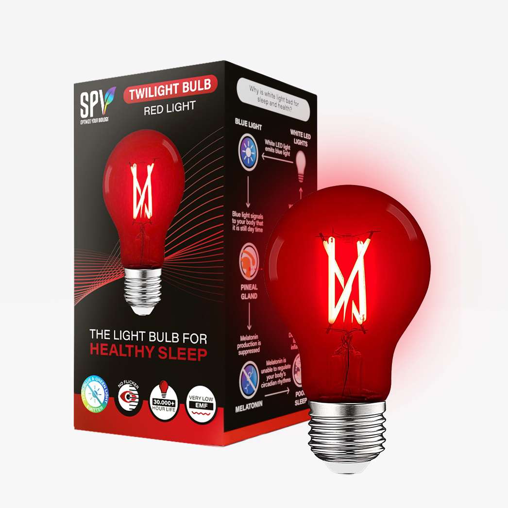 Las lámparas y ampolletas Twilight generan una luz ligeramente más tenue que no sólo elimina toda la luz azul, sino también toda la luz verde. Son ideales para utilizarlas en lámparas de lectura, dormitorios y cuartos de baño, o en cualquier lugar donde te relajes por la noche en las últimas horas antes de acostarte, ya que siguen proporcionando suficiente luz para leer y ver . Emiten un resplandor entre naranjo oscuro y rojo. Son lo último en lámparas para garantizar el mejor sueño posible.
